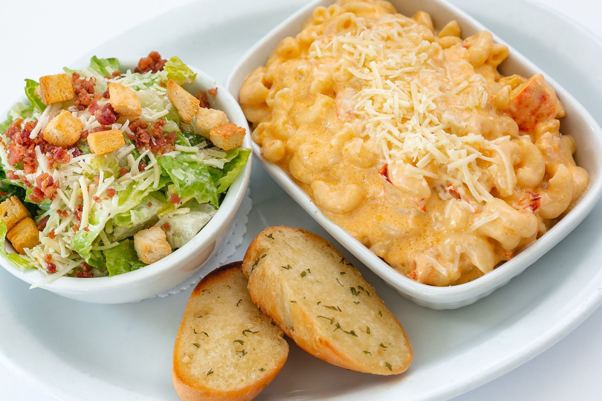 Creamy cheddar cheese sauce with chunks of fresh local lobster. Comfort and gourmet all in one. Served with Caesar salad and garlic toast.
